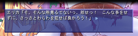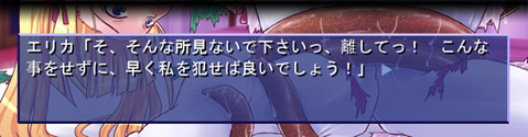 エリカ「なっ…、何なのじゃ、これは!?」 ハイドランの背中から無数の触手が伸びて、エリカの手足に巻きついて自由を奪う。 ハイド「こう見えても魔族の端くれなのでね、人間には無い手≠持っている」 エリカ「くぅっ、このバケモノが…」 そして触手は、エリカの下布をずり下げる。 |